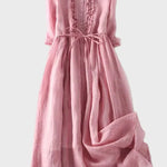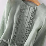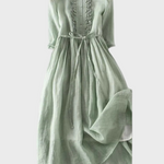 Fedezd fel ezt a hosszú, egyszerű és elegáns ruhát, amely lágy zöld árnyalatában frissességet és természetes eleganciát áraszt. Könnyed szabása és laza esése finoman körülöleli a sziluettet, biztosítva az egyedülálló kényelmet a nap minden pillanatában.